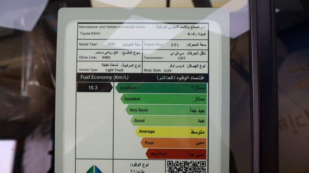 كفاءة استهلاك الوقود: 16.3 كم/لتر