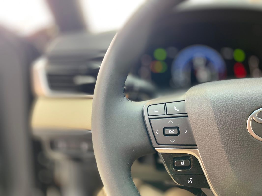 مقود مكسو بالجلد مع ازرار تحكم بالنظام الصوتي والهاتف و نظام التعرف على الصوت